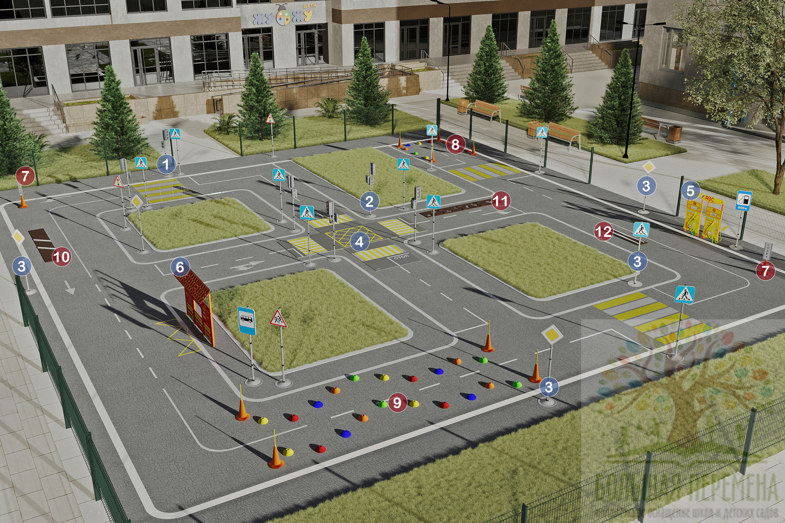 3.Имитация четырёхстороннего перекрестка 5,5х4,5 м.